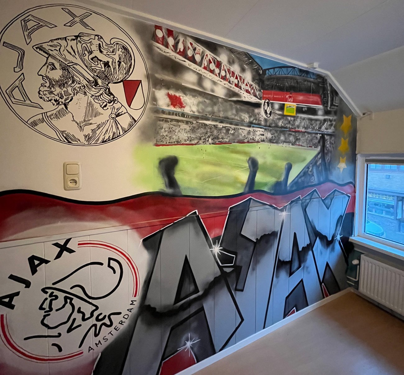 Naast kinderkamers maak ik ook graffiti muurschilderingen voor slaapkamers, speelruimtes, sportkamers, kantoren en bedrijfsmuren.