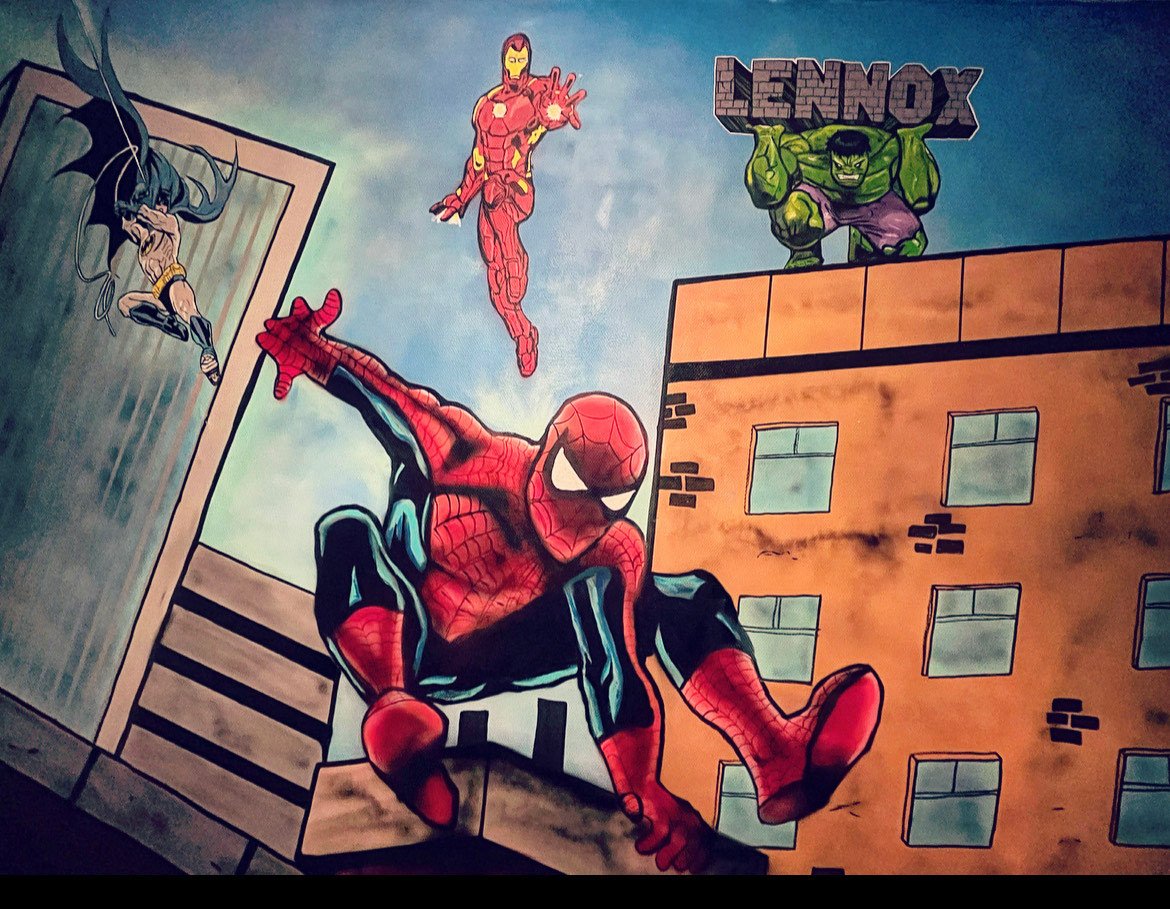 Ik maak muurschilderingen met stripfiguren, superhelden en bekende game-personages zoals: